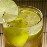 SLICE the lime into half-inch rounds, cube them and add to highball glass.
